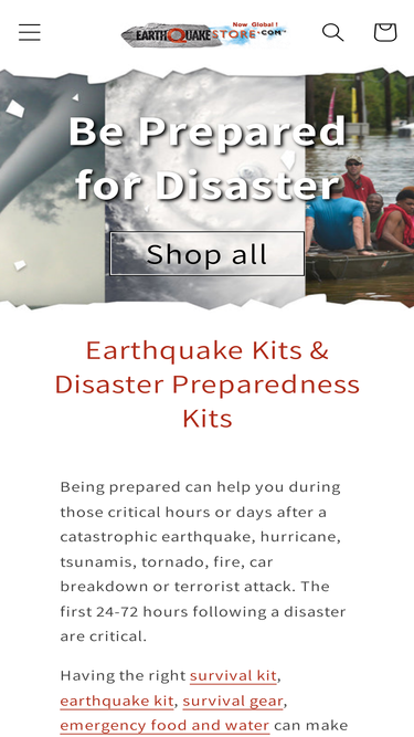 We sell 72 hour survival kits, safety dvds, for earthquakes, hurricanes, tsunamis, tornadoes, disasters, and earthquake shutoff valves.