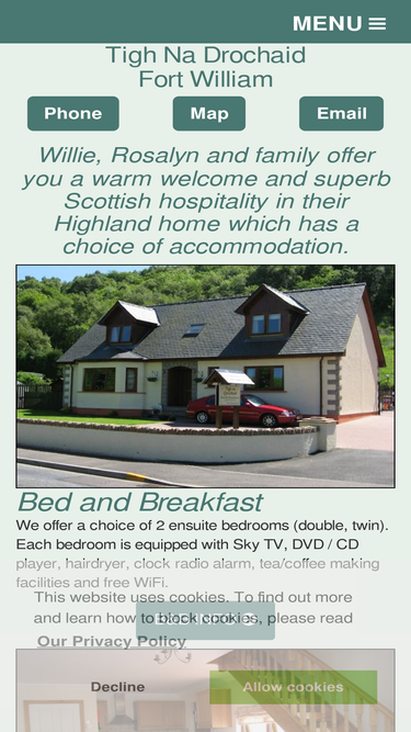 98%family friendly b&b and self catering in fort william at the end of the west highland way. free wifi. ramp for disabled access.