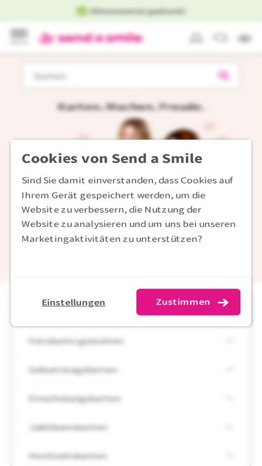 87%Sind Sie neugierig wie nachhaltig Send a Smile ist? ♻️ Lesen Sie unsere meist gestellten Fragen über Nachhaltigkeit 🌱 Send a Smile
