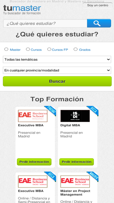 97%toda la oferta de masters en españa y masters online, compara todos los masters de madrid y barcelona de los mejores centros de formación y universidades.