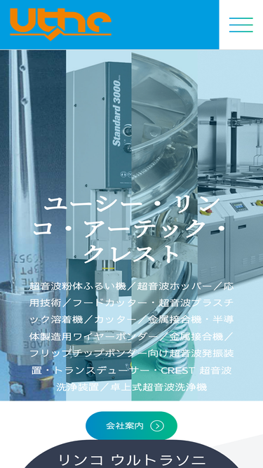 ユーシー テクノロジー社製品:半導体製造用ワイヤーボンダー/ フリップチップボンダー向け超音波発振装置・トランスデューサー。リンコ ウルトラソニックス社製品:超音波プラスチック溶着機/カッター/金属接合機。アーテック ウルトラソニック社製品:超音波粉体ふるい機/超音波ホッパー/応用技術/フードカッター。