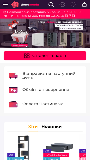 98%Розпродаж меблів вигідний спосіб оновити інтер єр з інтернет-магазином Шопомаг Інтернет-магазин меблів Шопомаг це ваш надійний помічник у створенні затишку та комфорту у будь-якому приміщенні. Ми працюємо з 2009 року і за цей час заслужили довіру тисяч клієнтів завдяки високій якості продукції доступним цінам та зручному сервісу. Якщо ви шукаєте можливість оновити інтер єр, то розпродаж меблів це чудовий шанс придбати стильні та якісні вироби за привабливими цінами. У нашому каталозі меблів представлений широкий асортимент товарів від м яких меблів та ліжок до кухонних меблів та предметів для офісу. Розпродаж дає можливість підібрати оптимальні рішення для будь-якої кімнати та будь-якого стилю, не виходячи за рамки бюджету. Наші покупці цінують меблі з розпродажу за різноманітність та зручність вибору. В наявності часто бувають як класичні так і сучасні моделі, які ідеально впишуться у ваш будинок або робочий простір. Наприклад модульні кухні розпродаж дозволяють створити функціональну та стильну кухню враховуючи будь-які розміри та планування. Також особливим попитом користуються розпродаж садові меблі і садові меблі з ротанга розпродаж ці рішення допоможуть організувати комфортне місце відпочинку на свіжому повітрі. У розділі розпродаж часто зустрічаються популярні позиції такі як крісло кокон розпродаж м які стільці розпродаж а також меблі для ванної кімнати меблі у ванну розпродаж. Ми приділяємо особливу увагу тому, щоб навіть товари з мінімальними дефектами були доступні в розділі меблі зі шлюбом розпродаж дозволяючи нашим клієнтам заощадити не втрачаючи якості. Вибираючи у нас ви можете купити стільці на кухню розпродаж або кутову кухню, яка оптимально використовує простір і додасть функціональності інтер єру. Покупка через наш інтернет-магазин це гарантія зручності докладний опис кожного товару реальні фотографії та відгуки покупців допоможуть зробити правильний вибір. Також у Шопомаг ви можете знайти та замовити ліжко односпальне 90х200 з матрацом розпродаж