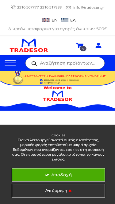 93%Χονδρική πώληση Θεσσαλονίκη. Από το 2005 η εταιρεία Tradesor O.E ασχολείται με Β2Β χονδρικές πωλήσεις και εισαγωγές προϊόντων.