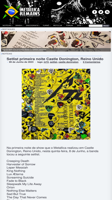 98%o mais atualizado site sobre o metallica em portugu�s, sempre com as �ltimas not�cias, setlists e datas de turn�, letras, discografia completa com singles, videografia, fotos e muito mais.