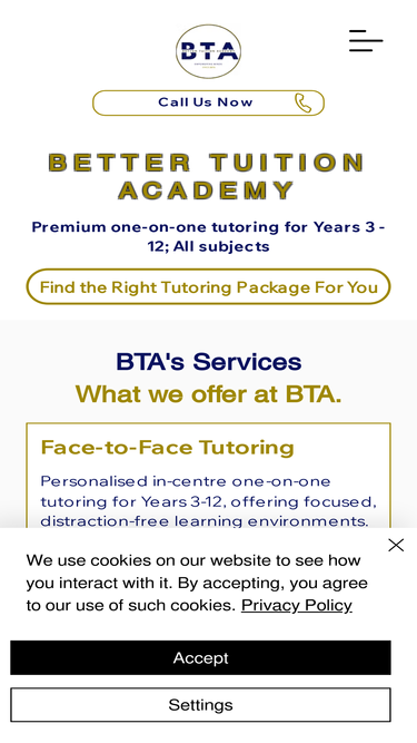 73%Better Tuition Academy (BTA) offers superb premium private tutoring for primary and high school students. Specialising in Years 3 - 12; Maths & English.