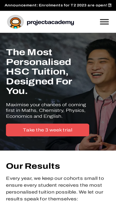 72%project academy is a tutoring centre for year 9 to year 12 students and is home to nsw's most passionate and inspirational teachers - across maths, chemistry, english, economics and physics.