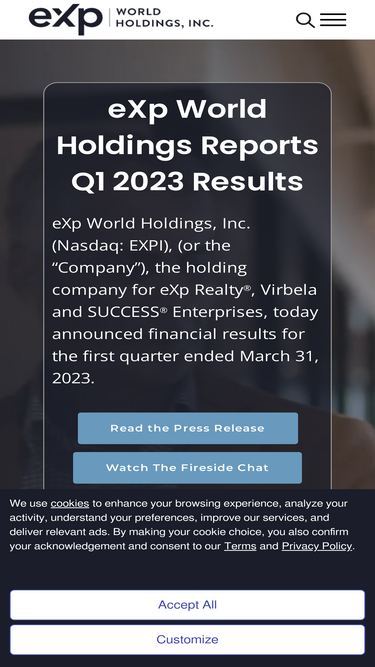 94%eXp World Holdings, Inc. (Nasdaq: EXPI) is the parent company for eXp Realty, Virbela, and SUCCESS Enterprises. Changing businesses globally.