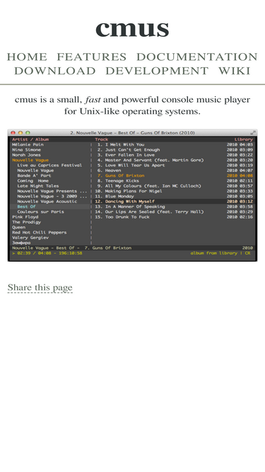 75%cmus is a small, fast and powerful console music player for unix-like operating systems.