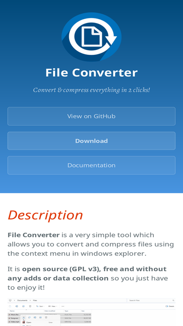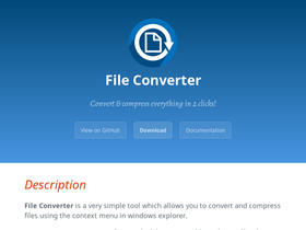 85%file converter is a very simple tool which allows you to convert and compress one or several file(s) using the context menu in windows explorer.