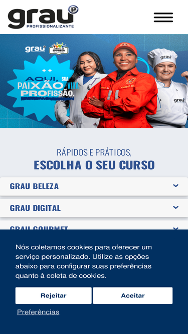 98%Grau Profissionalizante é um centro de ensino com estrutura completa, dedicado à qualificação de mão de obra para o mercado de trabalho. O Grau Profissionalizante oferece os cursos mais procurados, com aulas teóricas e práticas, ministradas em laboratórios equipados de acordo com cada segmento.