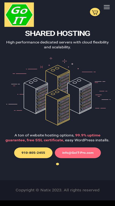 58%shared hosting high performance dedicated servers with cloud flexibility and scalability. a ton of website hosting options, 99.9% uptime guarantee, free ssl certificate, easy wordpress installs. 910-805-2455 info@goit-pro.com