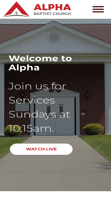 100%welcome to alpha baptist church! join us for worship at 10:15am.