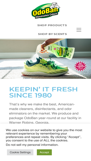 76%Eliminate odors, freshen and disinfect with OdoBan cleaning products. Remove tough odors, like pet odors, laundry odors and smoke odors. Use OdoBan for home, school, car or office.