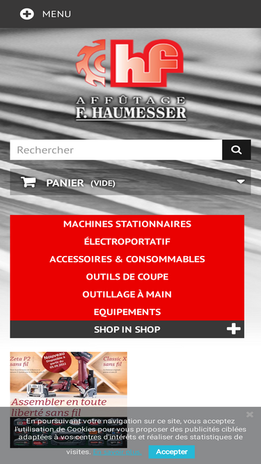 75%Haumesser SA : Vente de machines à bois et électroportatives professionnelles. Festool, Lamello, Fein, Milwaukee et plus. Outils et conseils techniques.