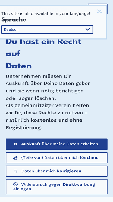 58%Mit unserem Anfragengenerator kannst Du einfach und kostenlos DSGVO-Anfragen, -Mahnungen und -Beschwerden erstellen. Deine Daten bleiben dabei auf Deinem Rechner – wir bekommen sie nie zu sehen.