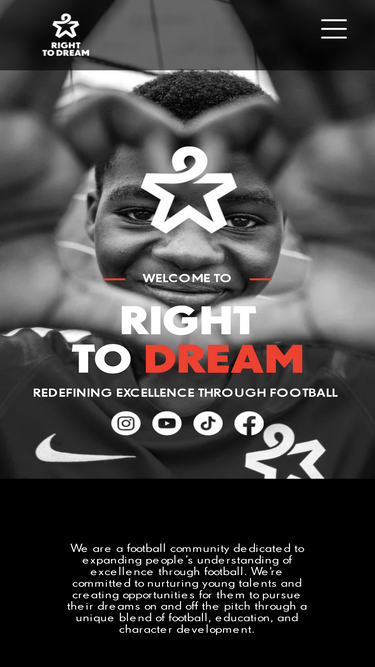 99%We're a community of dreamers dedicated to expanding people’s understanding of excellence through football. And we believe that every talent deserves a fair shot at pursuing their dreams, whatever they may be.