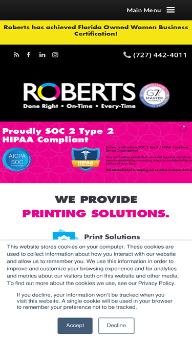 Roberts Printing has been proudly serving the Tampa Bay Florida area for over 45 years. We have provided quality printing to our customers and continue to deliver the best technology in offset and digital printing, direct mail, as well as online storefronts that offer 24/7 ordering access to all of your marketing materials.
