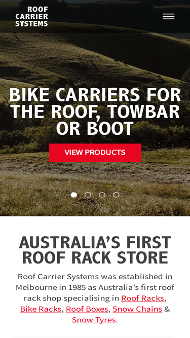 roof carrier systems was established in melbourne in 1985 as australia's first roof rack shop specialising in roof racks, bike racks, roof boxes, snow chains &
