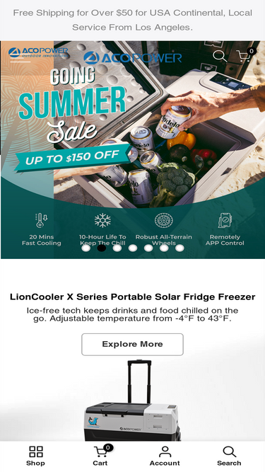85%Founded in the US 9 years ago, ACOPower has been dedicated to providing outdoor power solutions for RVers and car owners on the road. ACOPower's portable electric coolers, portable solar panels and more are designed for outdoor living lifestyles.