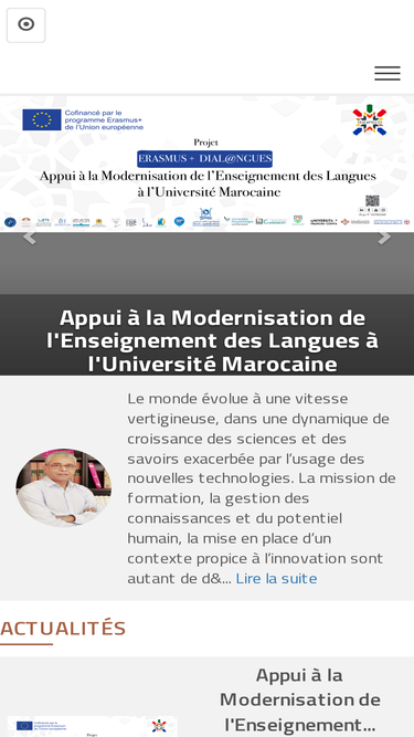 77%Nos Etablissements Faculté des Langues des Lettres et des Arts Faculté des Sciences Humaines et Sociales Faculté des Sciences Faculté d’Economie et de Gestion Faculté des Sciences Juridiques et Politiques Ecole Nationale de Commerce et de Gestion Ecole Nationale des Sciences Appliquées Ecole Supérieure de Technologie Ecole Supérieure d’Education et de Formation Ecole Nationale Supérieure de Chimie Institut des Métiers de Sport Nos Centres Centre Universitaire d’Analyse, d’Expertise de Transfert de Technologie En savoir plus Centre Sportif En savoir plus Centre Universitaire de Formation Continue et de Conférences En savoir plus Centre de Langues En savoir plus Centre de Vie Etudiant En savoir plus Centre de Développement de Carrière En savoir plus Théatre Universitaire En savoir plus Nos Laboratoires Biologie et Santé En savoir plus Ressources Naturelles et Développement Durable En savoir plus Matériaux Avancés et Génie des Procédés En savoir plus Géosciences En savoir plus Productions Végétales, Animales et Agro-industrie En savoir plus Chimie Organique, Catalyse et Environnement En savoir plus Physique des Matériaux et Subatomique En savoir plus Systèmes Electroniques, Traitement de l’information, Mécanique et Energétique En savoir plus Analyse, Géométrie et Applications En savoir plus Équations aux dérivées partiels, Algèbre et Géométrie Spectrales En savoir plus Recherche en Informatique En savoir plus Ingénierie des Systèmes Avancés En savoir plus Sciences de l’Ingénieur En savoir plus Evénements Read more Activités scientifiquesÉvènement THE INTERNATIONAL SYMPOSIUM ONAUTOMATIC CONTROL ANDEMERGING TECHNOLOGIES ACET 2023 IbnTofail Jul 05, 2023 Read more Activités scientifiquesActualités Cérémonie d’ouverture de la Première École d’été Africaine en Modélisation Moléculaire organisée par le Laboratoire de Matériaux Avancés et de Génie des Procédés de la Faculté des Sciences- Université Ibn Tofail, 13 et 14 Juin 2023 IbnTofail Jun 14, 2023 Read more ActualitésÉvèn