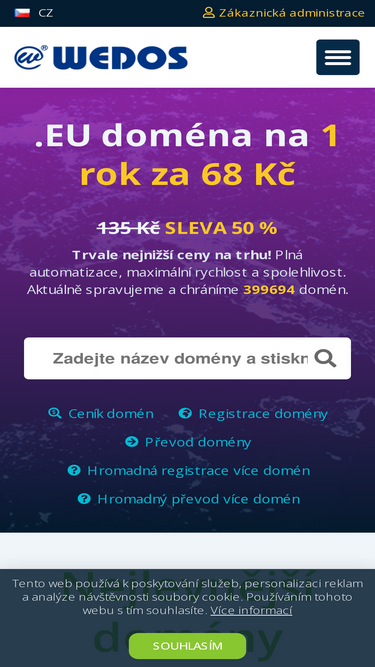 90%WEDOS / VEDOS Hosting. Nejlevnější domény na trhu, nejlepší hosting. Přechod k VEDOS se vyplatí! Momentálně spravujeme služby pro více než 300tis. zákazníků.