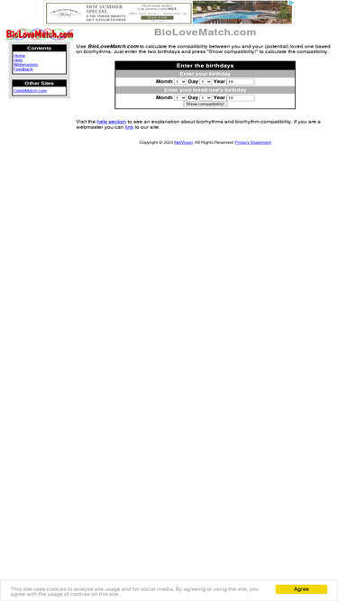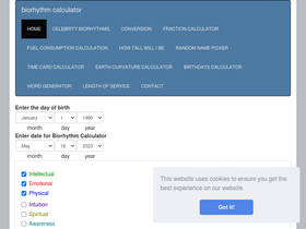 99%free online tool that calculates your biorhythms and biorhythm compatibility. informative charts. easy to use.