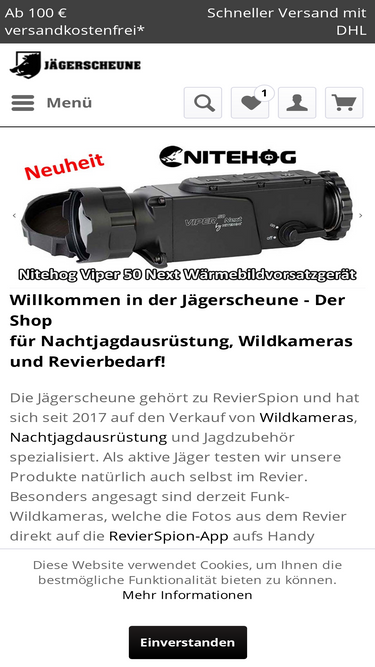 92%Der Shop für Nachtjagdausrüstung, Wildkameras und Revierbedarf!