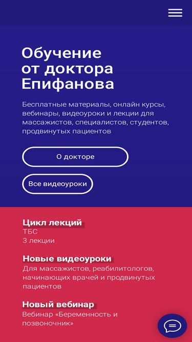 все обучение от епифанова: обучающие курсы, вебинары и лекции для массажистов от специалиста епифанова а.в. если вы хотите повысить свою квалификацию, узнать новые методики лечения и технике, то регистрируйтесь или пишите: info@epifanov.online
