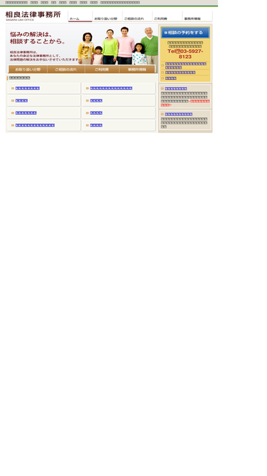 100%訴訟・交渉・強制執行・法律相談を中心とする法律事務所です。ビジネス弁護士として、企業法務、契約書、フランチャイズ、労働、独占禁止法、著作権、特許権、倒産、破産、会社再建、民事再生を取り扱うが、個人では遺産分割、相続、遺言、不動産、賃貸借、男女離婚問題に特に強い。