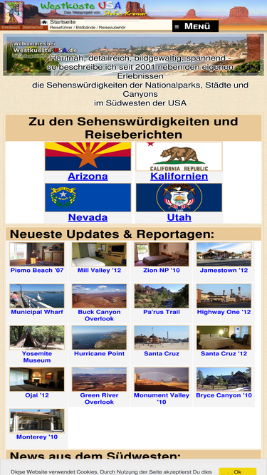85%das webprojekt westküste usa zeigt die sehenswürdigkeiten der nationalparks, städte und canyons im südwesten der usa (kalifornien, nevada, utah, arizona, colorado)