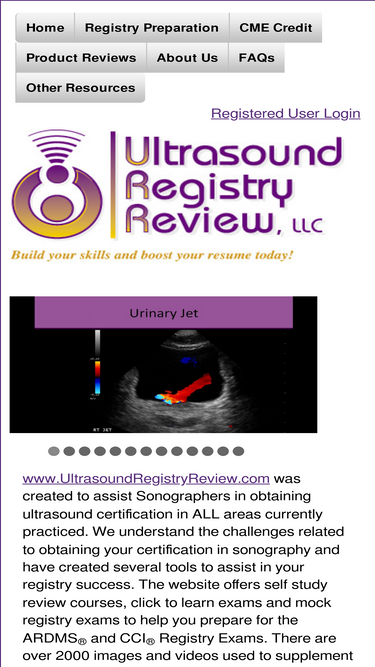 97%our site offers web-based registry review courses and practice exams for the ardms and cci registries. registry review products are available in abdominal ultrasound, breast ultrasound, fetal echocardiography, ob gyn ultrasound, vascular ultrasound, adult echocardiography and sonographic principles and instrumentation. the detailed registry review courses are supplemented with numerous superior quality vascular ultrasound cases. there are 500-1000 questions available in the question bank for each specialty based mock registry exam. you can also earn 5 cme credit while you study each course! let us help you prepare for your next registry exam!!