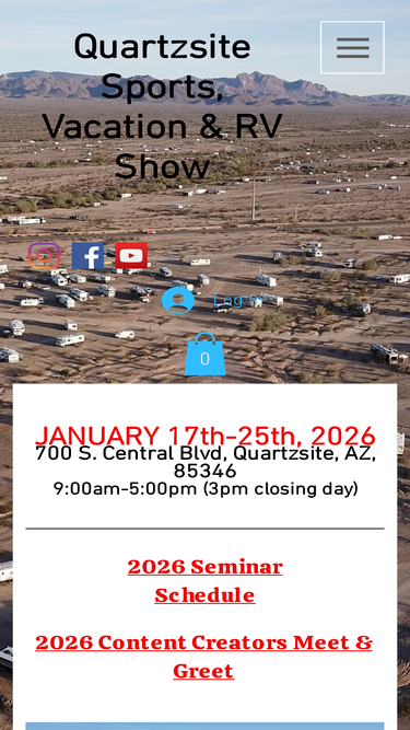 90%Over the last 30+ years, the Quartzsite Sports, Vacation & RV Show has become one of the “must-see” events for the RVing public and one of the “must-do" events for the RV industry. With attendance typically in excess of 150,000 RV enthusiasts, Quartzsite is a natural place to get your name, products