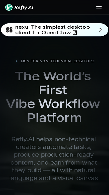 72%Refly.ai empowers non-technical creators to automate tasks, generate content, and even monetize their creations — all through natural language and a visual canvas.