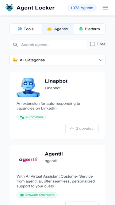 78%Discover, compare, and integrate with the world's most comprehensive AI agent directory. Find the perfect AI solutions for your needs, updated daily with new AI tools and agents.