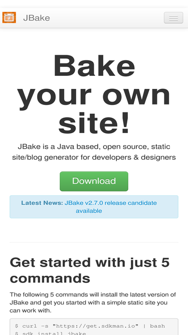 100%jbake is a java based, open source, static site/blog generator for developers.