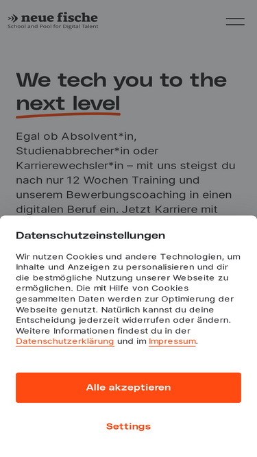 92%12 Wochen Coding Bootcamps und IT Weiterbildung in Hamburg, Köln, München, Frankfurt und live remote.