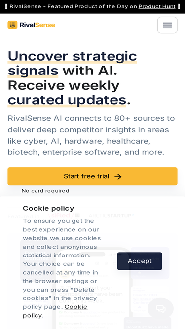 100%RivalSense transforms web data into actionable intelligence. Uncover strategic insights with competitive intelligence to outmaneuver rivals. Accelerate revenue growth through account intelligence that reveals hidden sales and upsell opportunities. Identify and establish new partnerships with data-driven connection points. Mitigate risks using regulatory intelligence that tracks compliance changes. Plus, monitor specialized trends like auto crashes in the US for targeted market analysis—all in one platform. Power your business with the signals that matter.