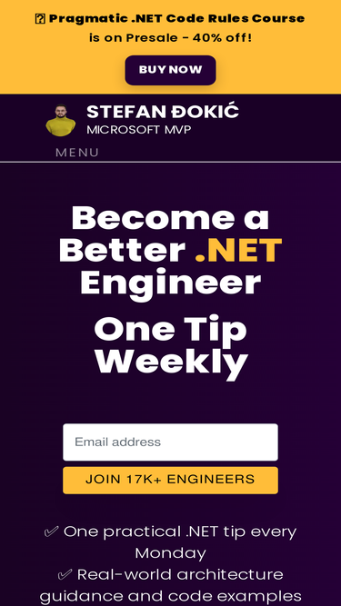 97%Stay updated with TheCodeMan.NET! Authored by Microsoft MVP Stefan Djokic, providing expert insights, tutorials, and news on .NET and C# technologies.