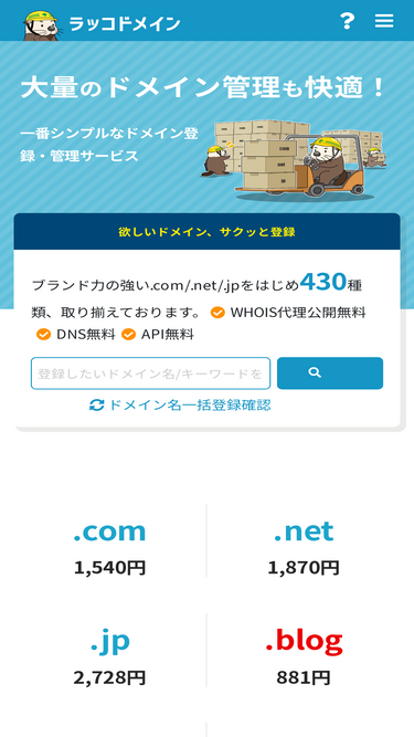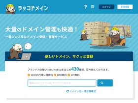 92%540種のドメインから最短3分でドメイン取得!無料のDNS/WHOIS代理公開/API/転送機能とサービス充実!個人から法人の大量管理にも対応したシンプルな管理画面を提供しています。ドメイン売買・サイト売買ともシームレスに連携できます。