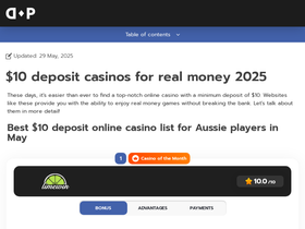 47%Check out online casinos with a $10 minimum deposit for Australian players. Play at trusted and secure sites starting with just $10