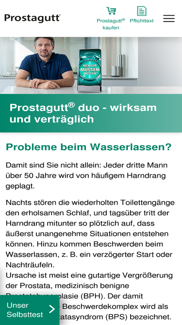 93%Probleme beim Wasserlassen? Damit sind Sie nicht allein: Jeder dritte Mann über 50 Jahre wird von häufigem Harndrang geplagt.