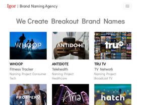 99%igor naming agency creates the most powerful brand names in the world, naming companies launched by richard branson, bill gates and steve wynn to startups in ai, education, healthcare, software, biopharma, yoga wear, virtual reality, social media and everything in between.