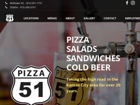 80%pizza 51 is a casual, family-friendly pizza restaurant in kansas city, located in brookside, missouri. pizza 51 offers eat-in, carryout, and delivery of pizza, calzones, sandwiches, and salads. the restaurant is a renovated gas station, giving it an atmosphere reminiscient of the classic age of automobiles.