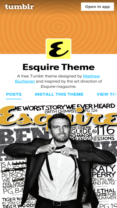 100%a free tumblr theme designed by matthew buchanan and inspired by the art direction of esquire magazine.