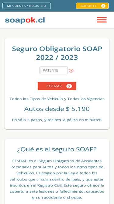 80%soap 2021 seguro obligatorio para auto, camión, moto y más. cómpralo aquí en 3 sencillos pasos. 100% online rápido, fácil y de vigencia inmediata...