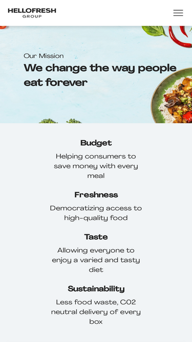 75%HelloFresh SE ist der weltweit führende Anbieter von Kochboxen. Erfahren Sie mehr auf unserer Unternehmenswebseite.