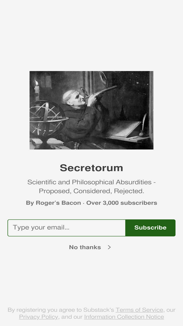 92%happy the dumb beast, wretched the mortal. Click to read Secretorum, by Roger’s Bacon, a Substack publication with thousands of subscribers.