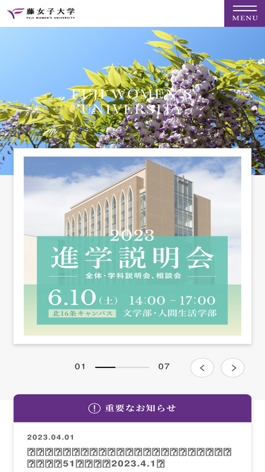 69%藤女子大学・大学院の公式サイトです。カトリック精神を基盤とした教育を通じ、高い知性と豊かな人間性を備えた女性の育成を目指しています。
