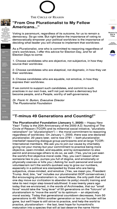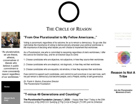 100%the circle of reason, inc., is a 501(c)(3) non-profit organization devoted to fellowship and service to society, but in a way different than you've seen before -- as an organization for pluralistic rationalism (plurationalism).