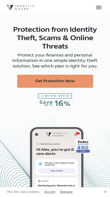 98%get identity theft protection, credit monitoring and $1m insurance coverage. family plans start at $12.50. peace of mind begins with identity guard.